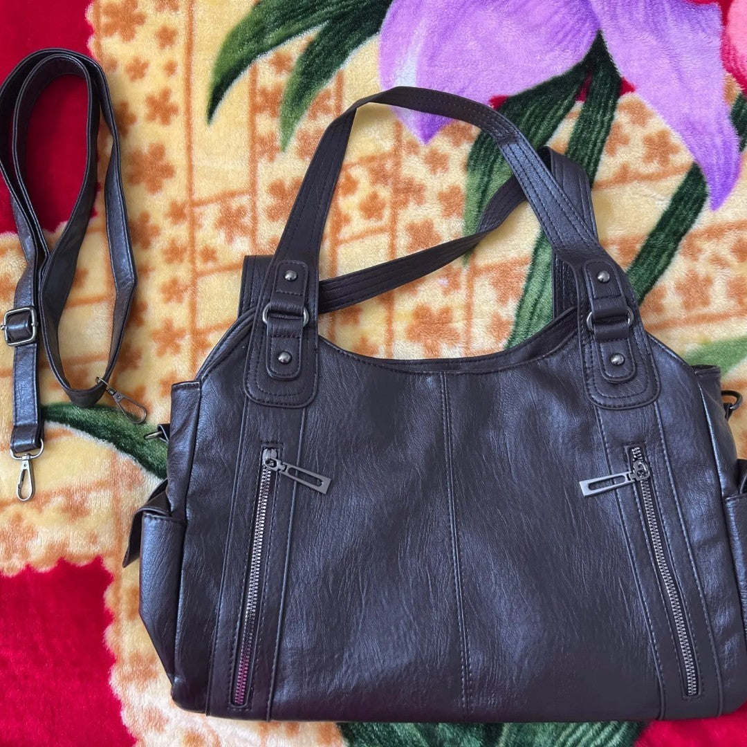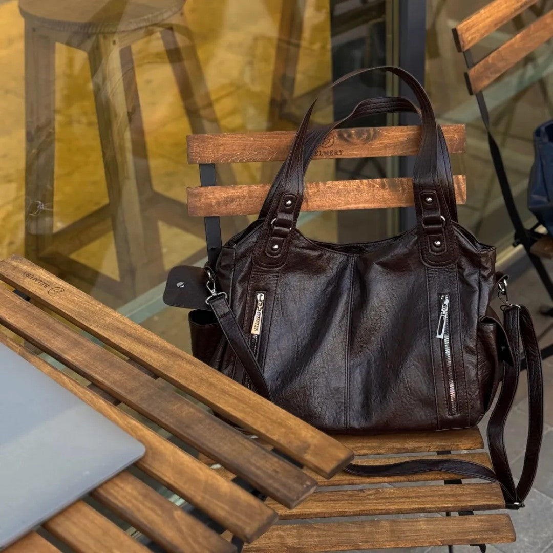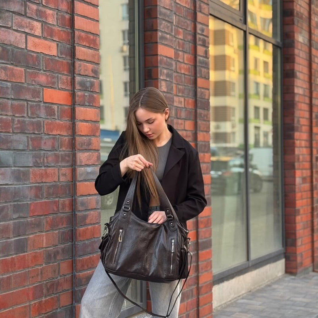 I bought the Angelina Bag in black and it instantly became my everyday bag. The big main zipper keeps everything safe and organized.