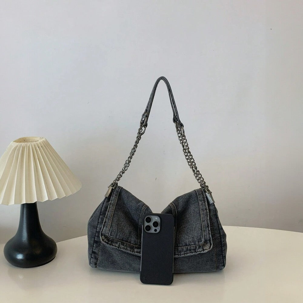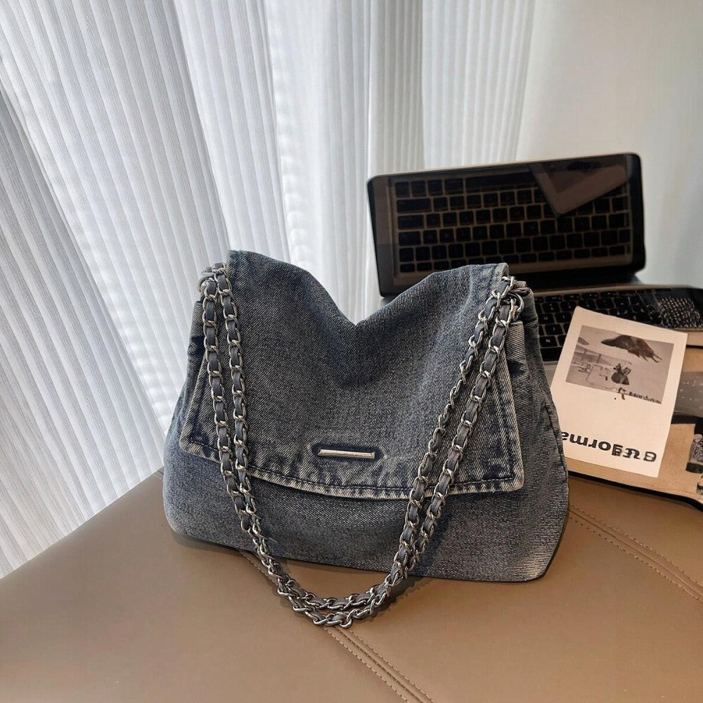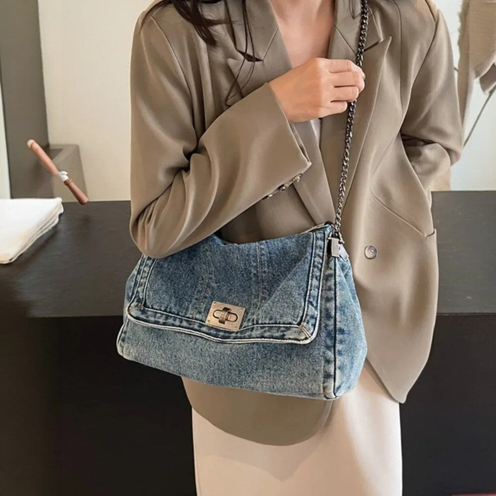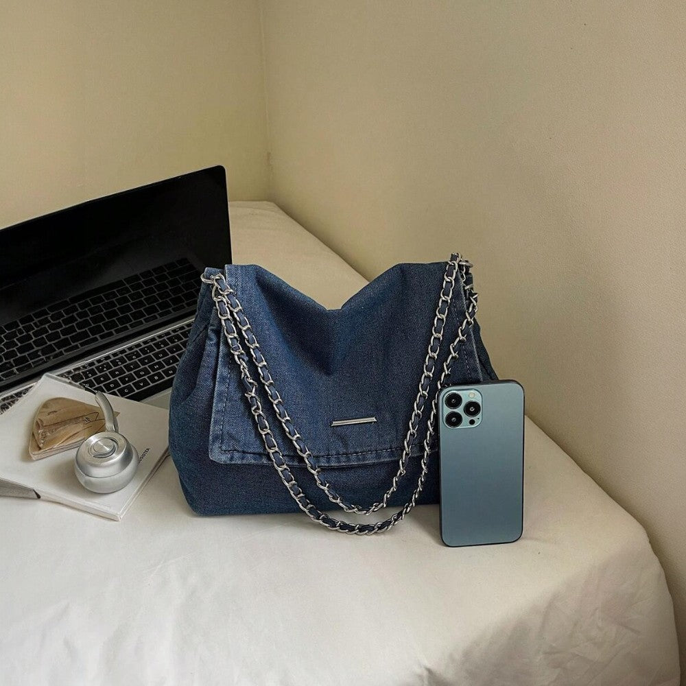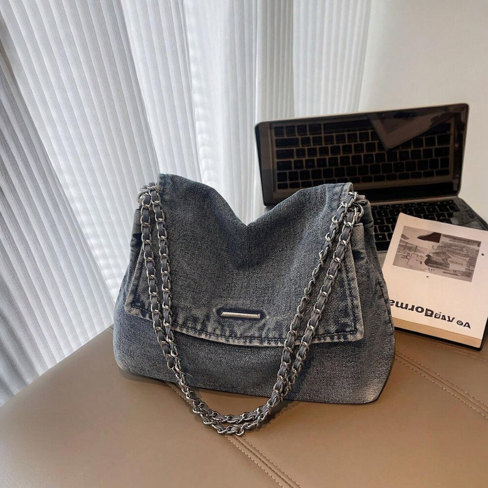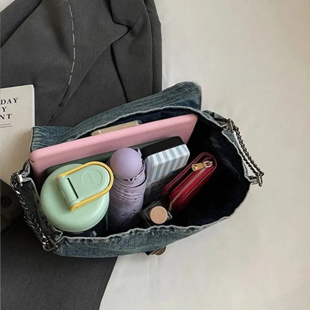 Vår Grace-väska är gjord av högkvalitativ denim, som kombinerar avslappnad stil med hållbarhet. Designad för att vara rymlig nog, rymmer den enkelt dina nödvändigheter: laptop, smink och vardagliga tillbehör.