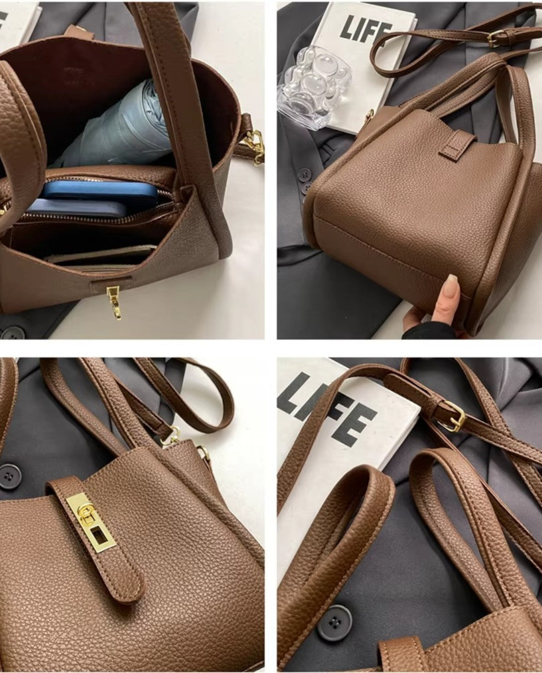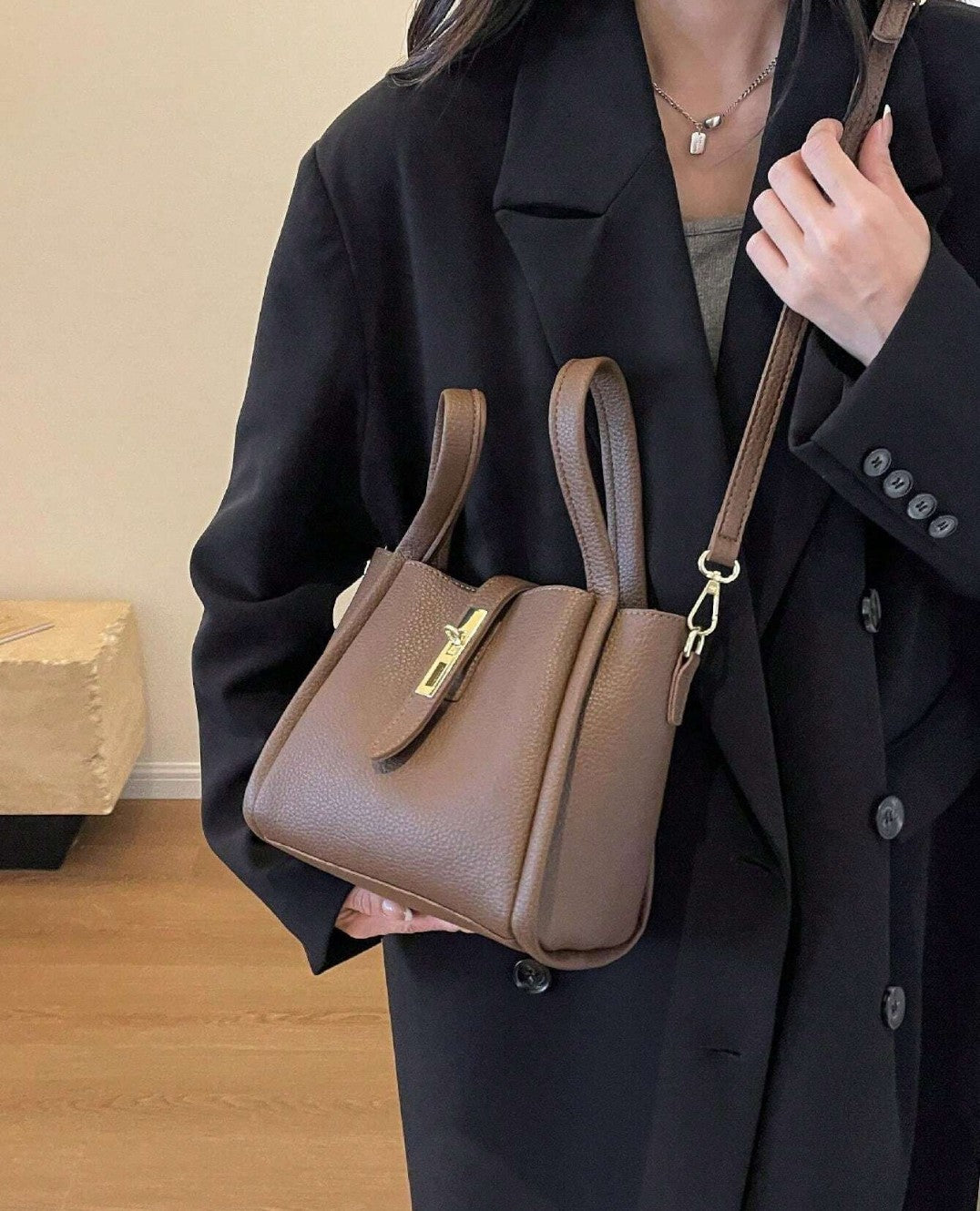 Vini-väskan är tillverkad av lyxigt äkta läder, som kombinerar tidlös elegans och hållbarhet. Dess kompakta men rymliga design är perfekt för att bära dina dagliga nödvändigheter och låter dig förbli elegant och organiserad.